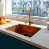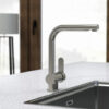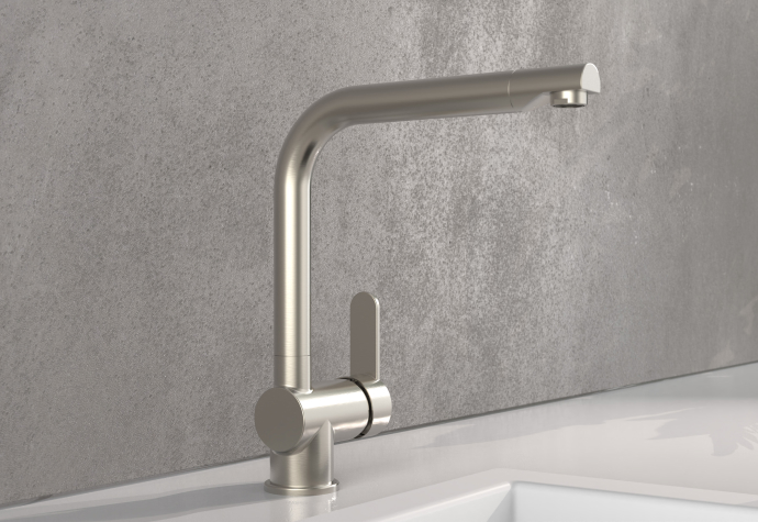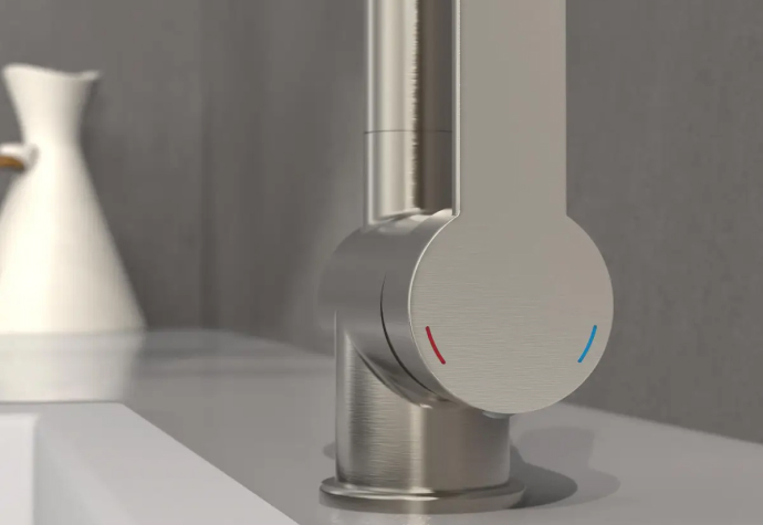 Grifo monomando de caño fijo con rotación de 360° ofrece total libertad de movimiento en la zona de trabajo. Equipado con apertura en frío, evita consumos innecesarios de agua caliente y contribuye al ahorro energético.